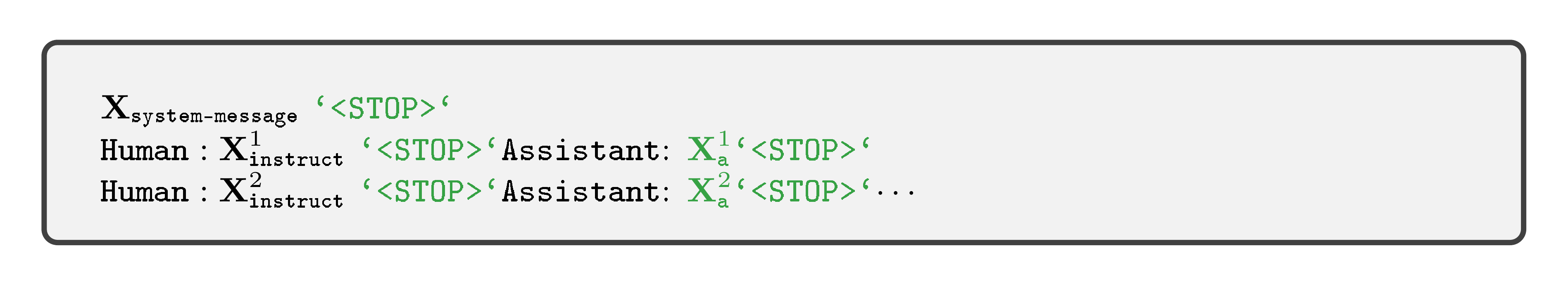 <STOP> for better readability. For LLaVA model training, we consider a two-stage instruction-tuning procedure.- Multimodal Chatbot. We develop a Chatbot by fine-tuning on the 158K language-image instruction-following data in Section 3. Among the three types of responses, conversation is multi-turn while the other two are single-turn. They are uniformly sampled in training.