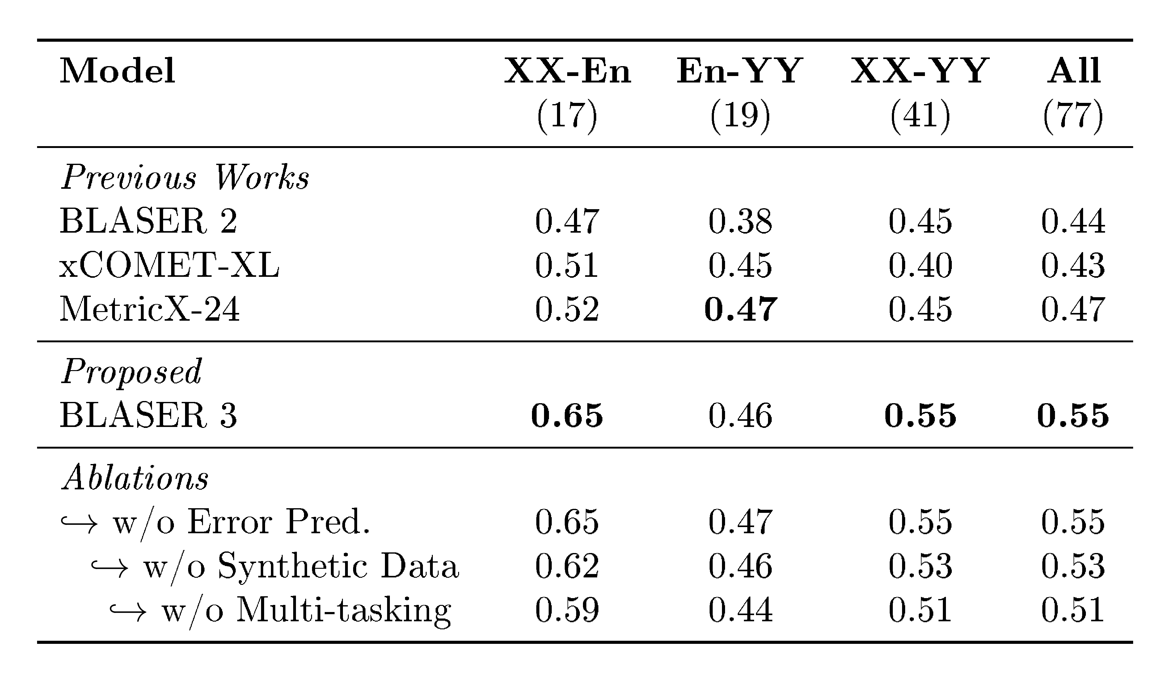[161] Dale, David and Costa-jussà, Marta R (2024). Blaser 2.0: a metric for evaluation and quality estimation of massively multilingual speech and text translation. In Findings of the Association for Computational Linguistics: EMNLP 2024. pp. 16075–16085.