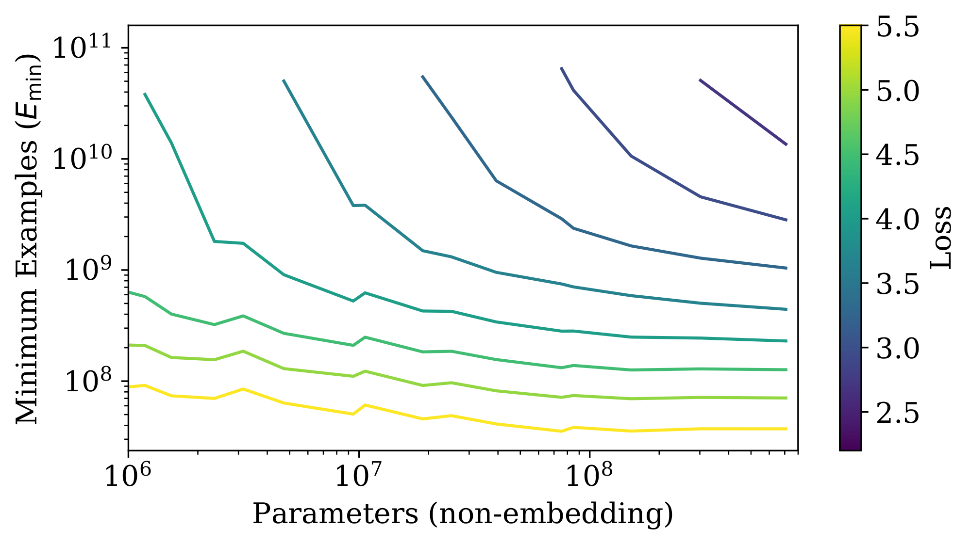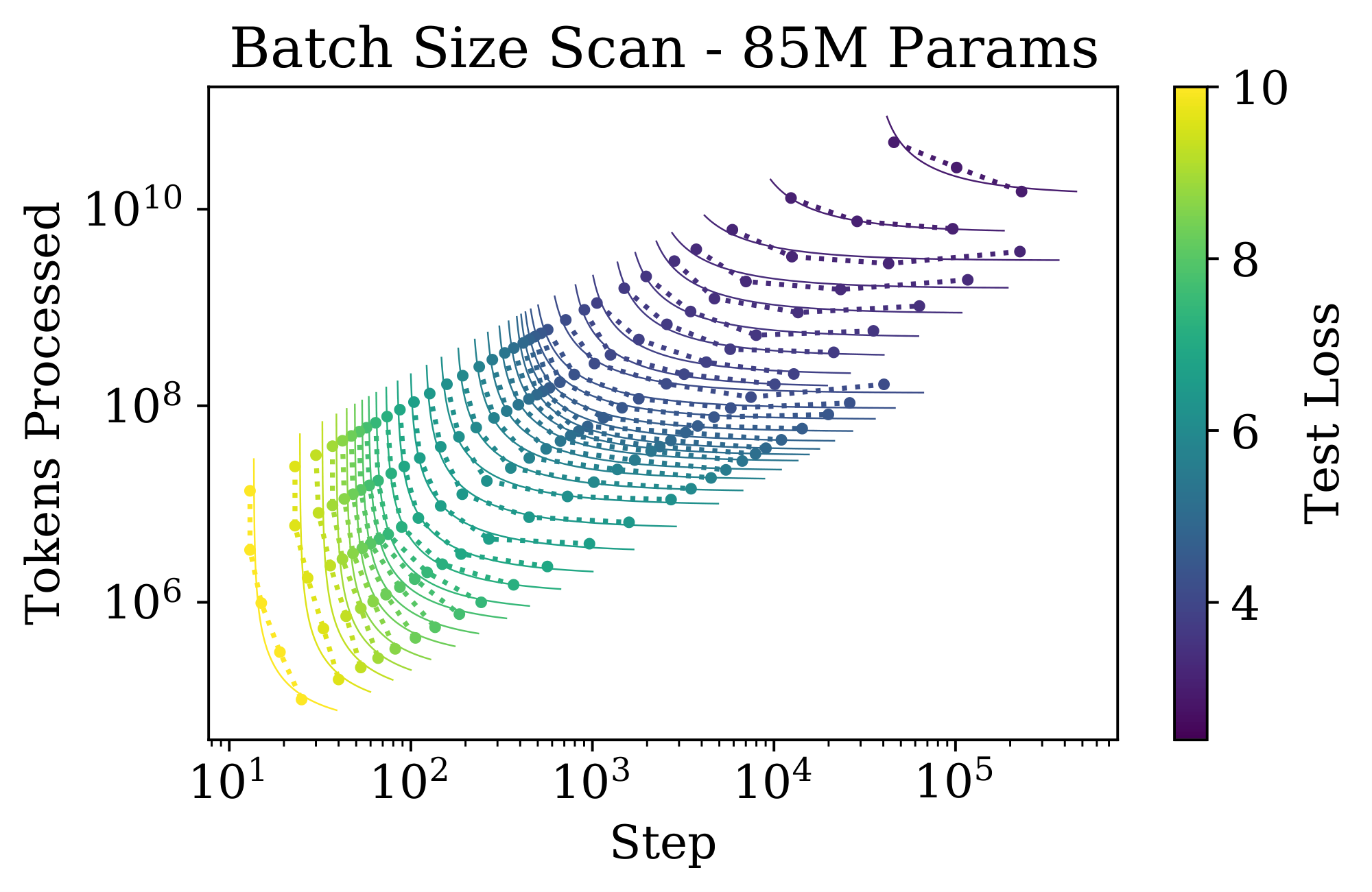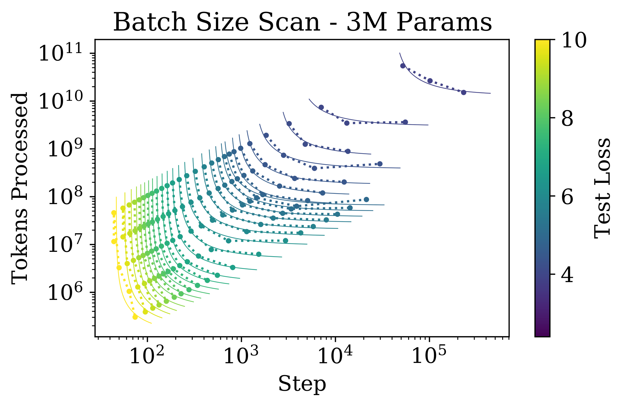 $ B_{\rm crit}\left(L\right)=\frac{B_{\ast}}{L^{1/\alpha_{B}}}, \qquad B_{\ast} \sim 2\cdot 10^8 \text{ tokens}, \ \ \alpha_{B} \sim 0.21\tag{4} $