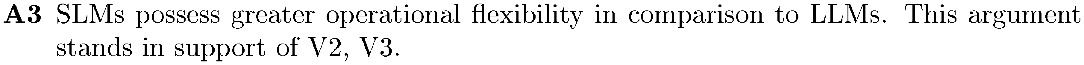 The above alternative view is the most popularly cited belief against the use of SLMs, even when only a narrow language task needs to be performed [52, 53, 54, 55].