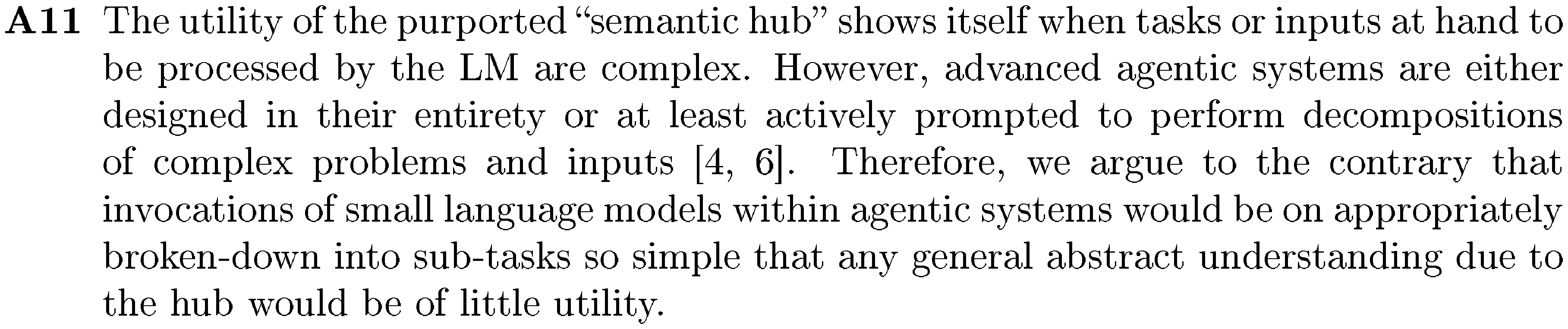It could be argued back that the careful interfacing with a generalist LLM is necessary for strong performance on the narrow task because of the LLM's better understanding of the broader language and the world (AV1). This is addressed in Section 4.1.