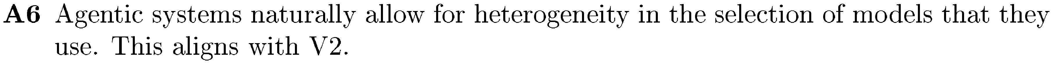 Moreover, in cases where general reasoning or open-domain dialogue is essential, we advocate for heterogeneous agentic systems, where SLMs are used by default and LLMs are invoked selectively and sparingly. This modular composition — combining the precision and efficiency of SLMs with the generality of LLMs — enables the construction of agents that are both cost-effective and capable.