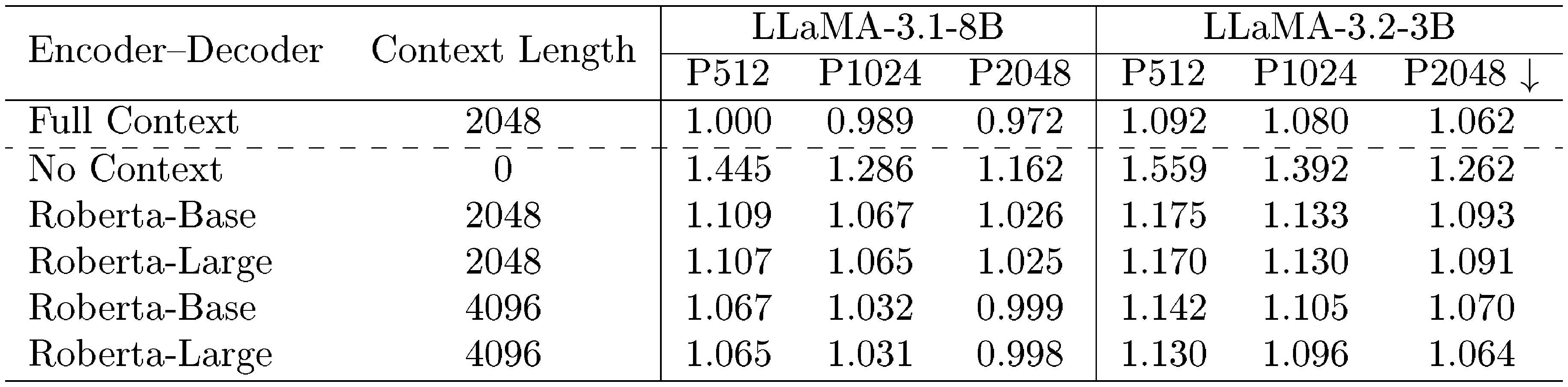 | $\textsc{LLaMA-Full Context}$ | 1.448 | 1.458 | 1.464 | 1.449 |