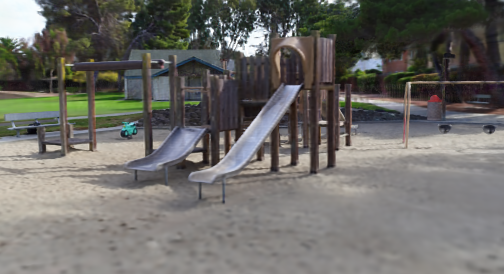 Figure 8: Real, $360^\circ$ scenes. Example results on the playground and truck $360^\circ$ scenes from Tanks and Temples [57]. ::::
